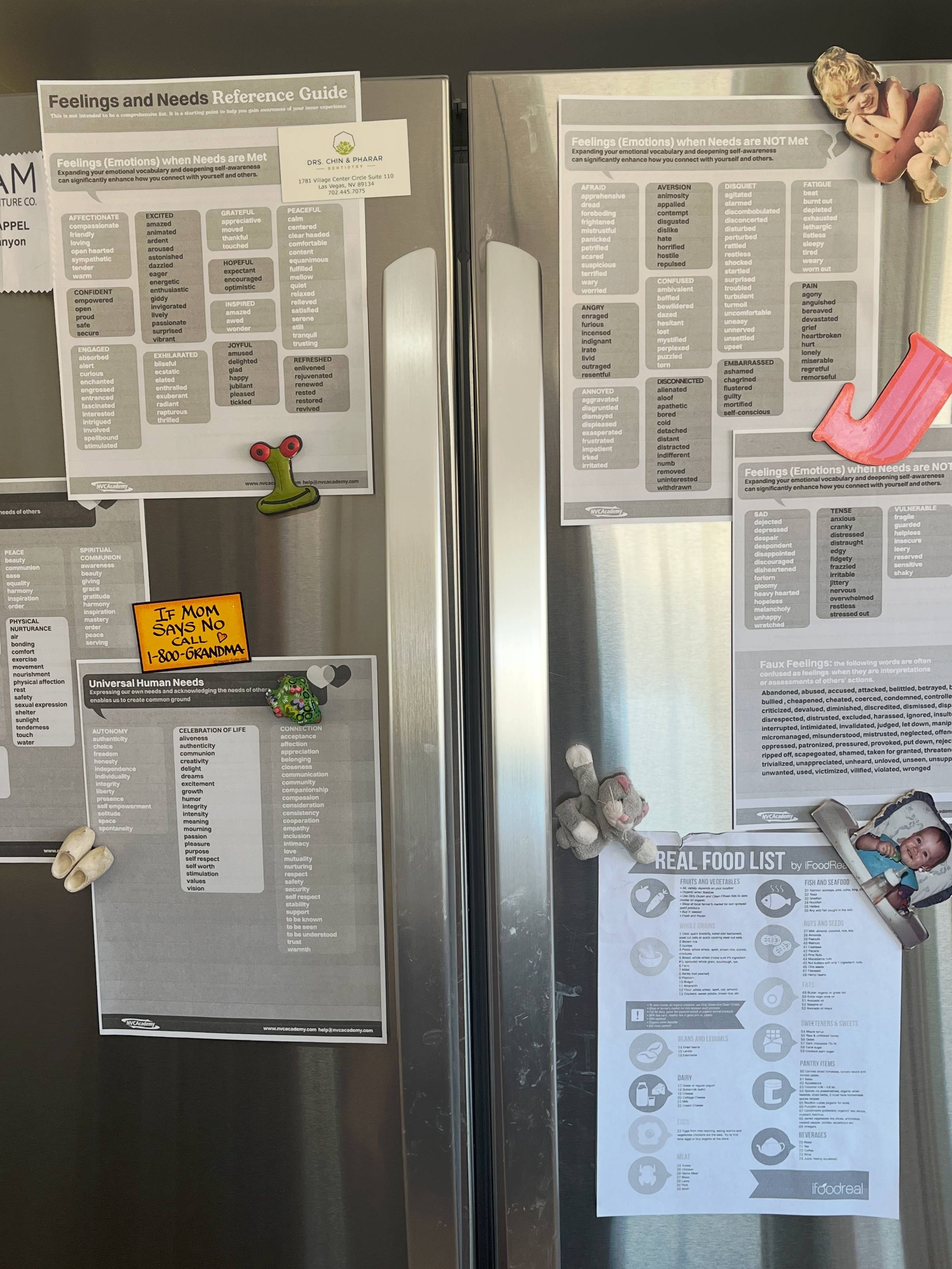 Now, taped to the fridge right above our "Real Foods" list is a new list—a word list. It is a reference guide to actual feelings—real, in-the-body emotions. Words like joyful, calm, grateful, excited, hurt, discouraged, tense, and vulnerable—not faux feelings like "attacked" or "ignored," which are judgments in disguise.
